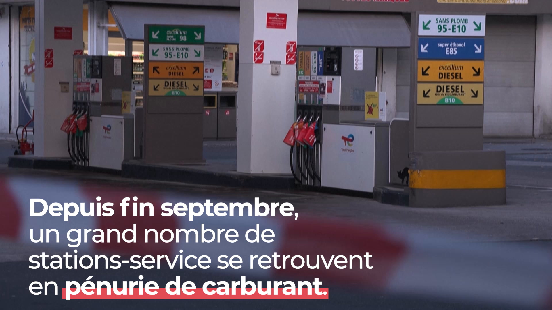 . Pénurie de carburant. Les grévistes qui sont des salariés travaillant pour des raffineries et des dépôts de carburant de TotalEnergies et la filiale. Des stations essence sont en rupture de stock à Marseille depuis plusieurs jours.